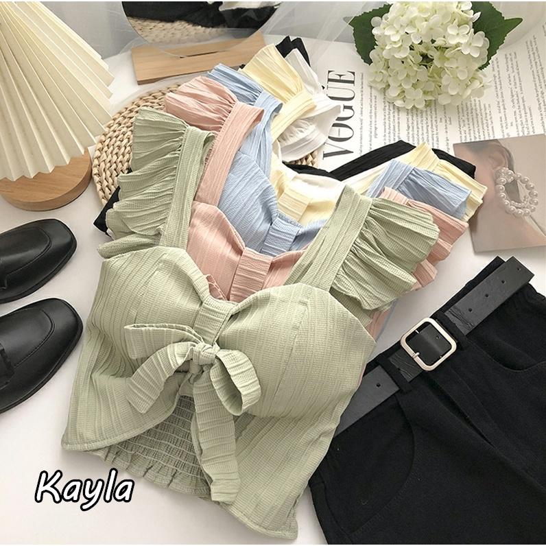 現貨⚡免運⚡絕版下殺🔥 壓紋荷葉邊肩帶蝴蝶結吊帶背心 A0717 #Kayla.girl #少女愷拉 #實穿