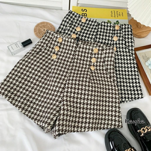 現貨⚡免運⚡絕版下殺🔥 編織感千鳥格金釦高腰短褲A0325 #Kayla.girl #少女愷拉 #實穿