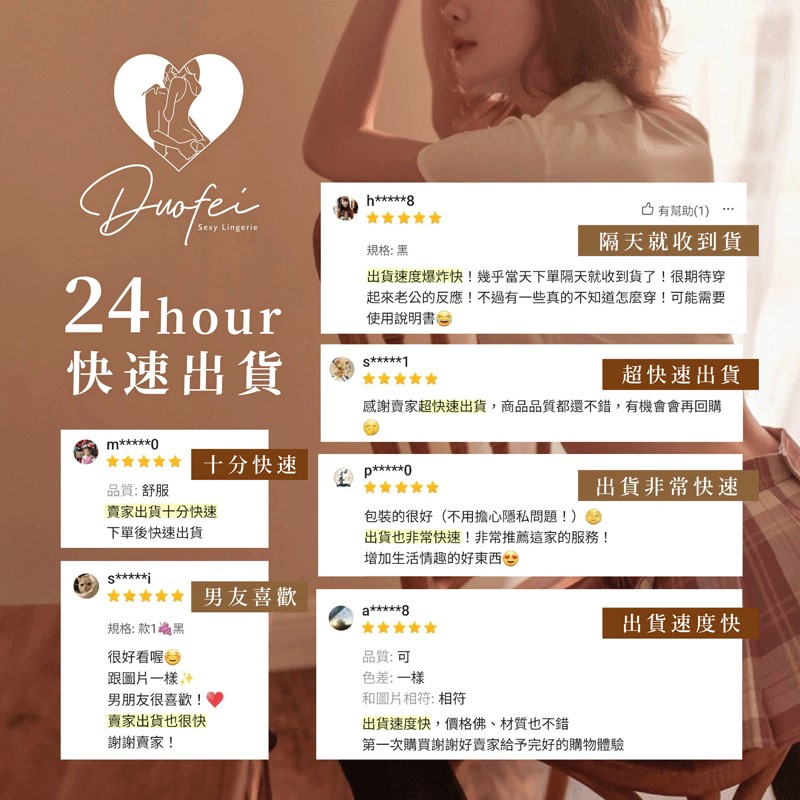 挑選過的商品絕對會是眾多廠商中質料最好的,公司夥伴們都實穿測試過才會放上架賣,尤其是丁字褲的部分更加嚴格,每天工作坐在椅子上八小時以上都不卡不會不舒服為原則,我就是這麼的龜毛,最接近皮膚的商品必須是最好的。