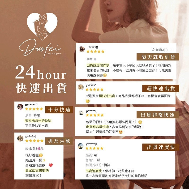 挑選過的商品絕對會是眾多廠商中質料最好的,公司夥伴們都實穿測試過才會放上架賣,尤其是丁字褲的部分更加嚴格,每天工作坐在椅子上八小時以上都不卡不會不舒服為原則,我就是這麼的龜毛,最接近皮膚的商品必須是最好的。