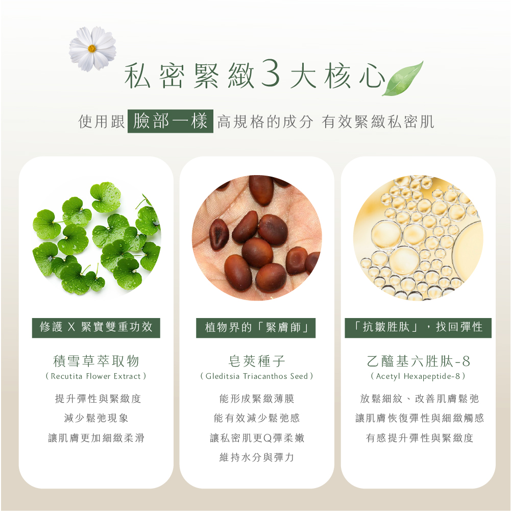 ✔ 維他命E—抗氧化,維持私密肌彈性與光澤