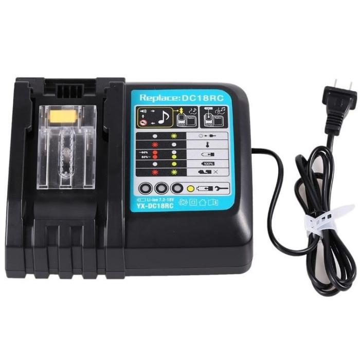 充電輸出電壓:14.4-18V    充電器輸入電壓:100-240V 50/60HZ 全球通用    充電輸出電流:DC6.5A    替代牧田DC18RC T款充電器 智能雙脈衝充電,有效保護電池 14.4-18V通用,新款六級能效  內置音樂充電和充滿電音樂提醒功能               輸入:100-240 AC,50-60HZ  無負載電壓:0 V.  充電方式:CC-CV  效率:≥85% 保護功能: 檢測到充電器故障時停止 正在充電檢測到有缺陷的電池短路時自動切斷 溫度:過熱時停止充電 隨著時間的推移:充電時間≥136分鐘時停止充電 LED指示: 待機:綠色以1 Hz的頻率閃爍 充電:紅燈亮-電池容量<80% 紅燈和綠燈亮-電池容量≥80% 100%充電-綠燈亮 加班停止充電-綠燈亮 電池故障-紅色和綠色指示燈閃爍1 Hz  短路-紅燈閃爍3 Hz  充電器故障:紅色和綠色指示燈閃爍3 Hz  淨重:約604g (不包括包裝) 工作環境:溫度:0~40℃  濕度:≤85% 氣壓:86 Kpa-106 Kpa  儲存和運輸環境:溫度:-20℃~65℃  濕度:≤90% 氣壓:70~106Kpa +  包裝內容: 替代MAKITA電池充電器14.4V-18V輸出21V,適用於牧田BL1830 BL1815 BL1840  廣泛兼容性: Makita鋰離子電池的充電電壓為14.4V至18V 完全兼容makita 14.4V和18V電池,BL1830 BL1840 BL1850 BL1815 BL1430 BL1415