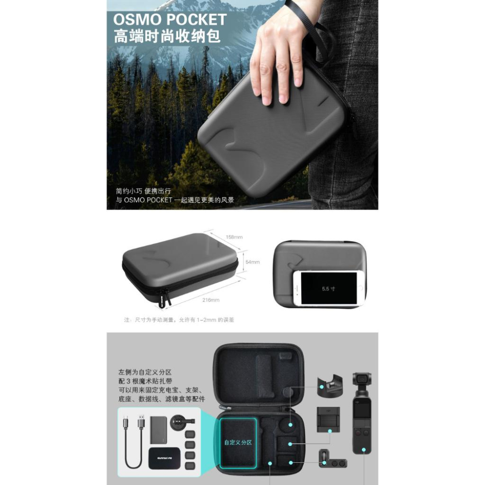 內容物:SUN OSMO POCKET 收納包 *品牌:Sunnylife *產品編號:SLD-296 *適用機型:OSMO POCKET *不含圖中展示的 OSMO POCKET、、電池、充電器、相機、手機、平板電腦、傳輸線。