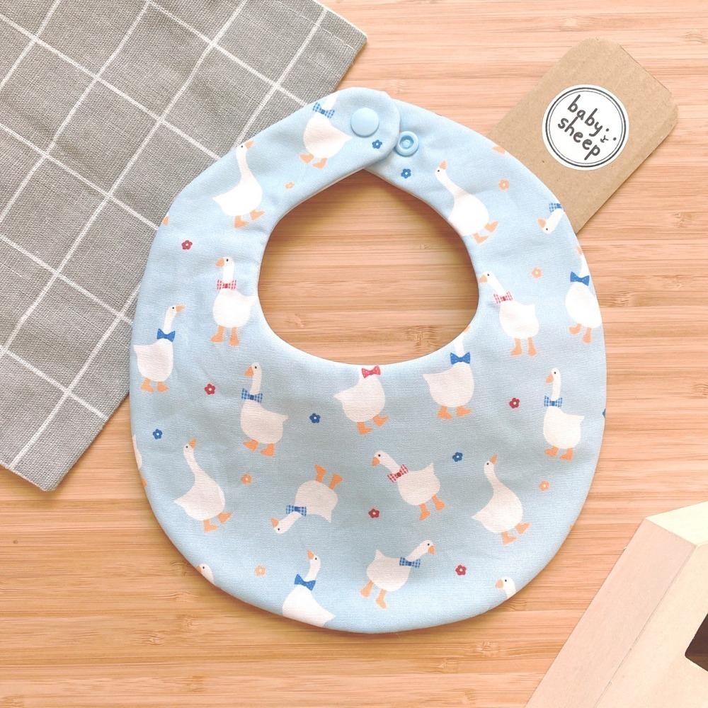 【babysheep】8層棉粉藍白鵝圍兜 蛋型圓兜 花型圍兜 圍兜兜 寶寶口水巾 手作圍兜 圍兜 口水巾 吸水兜