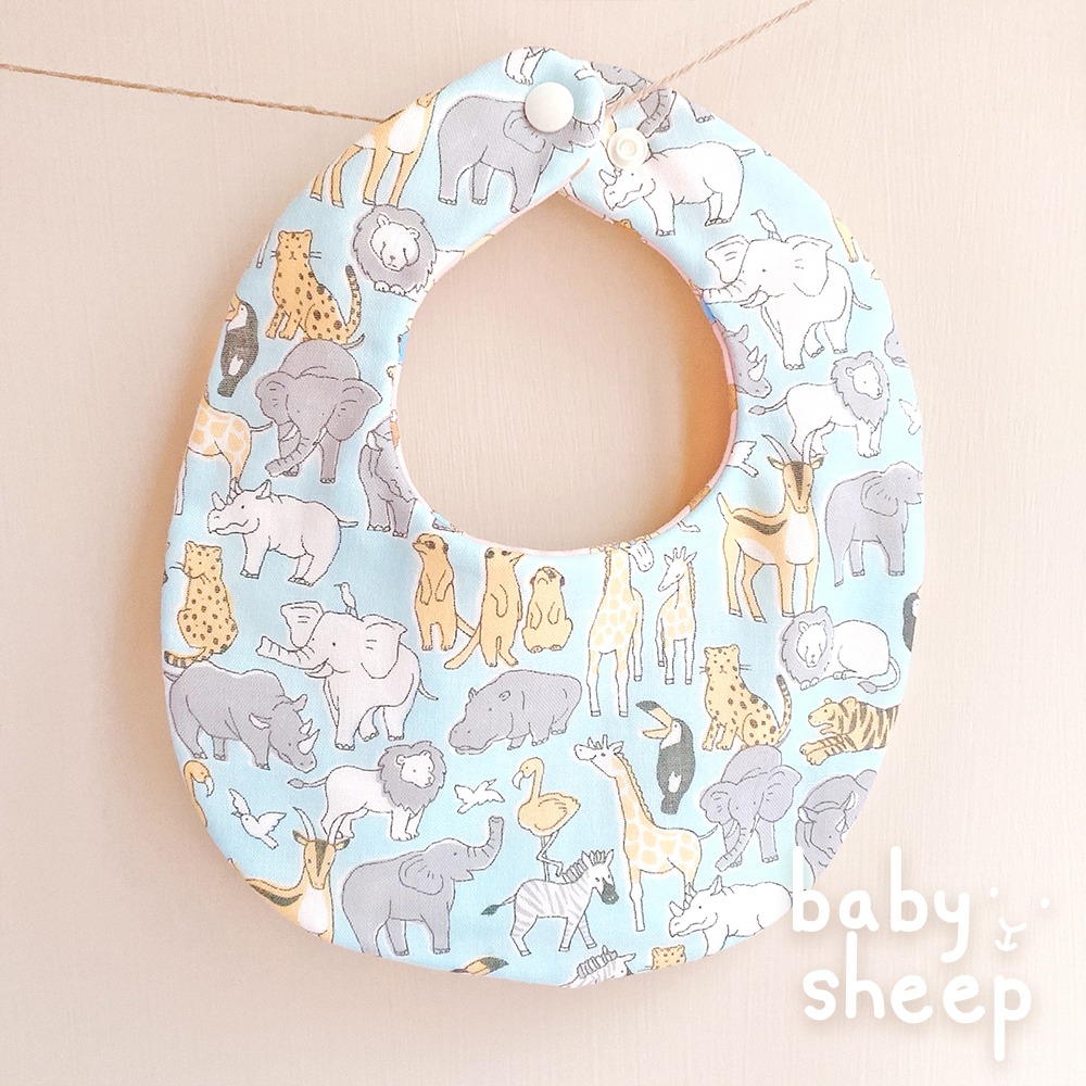 【babysheep】日製9層棉動物集會口水巾 蛋型圍兜 動物口水巾 動物 獅子 大象 口水巾 吸水兜 手作 圍兜兜