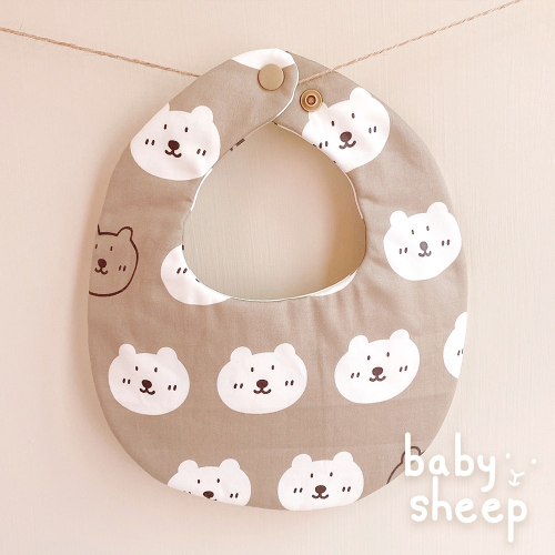 【babysheep】台製8層棉奶茶微笑熊口水巾 動物 熊熊 奶茶色 雙面 好搭 手作圍兜 圍兜 吸水兜 手作 台灣製作