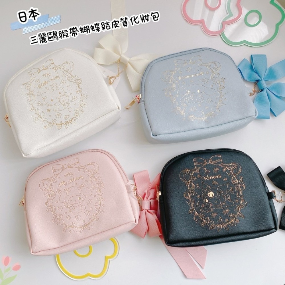 日本三麗鷗緞帶蝴蝶結皮質化妝包
