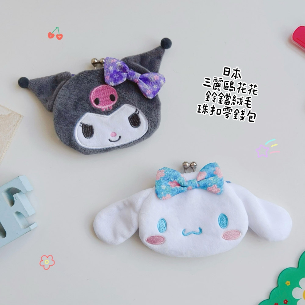 日本三麗鷗花花鈴鐺絨毛珠扣零錢包