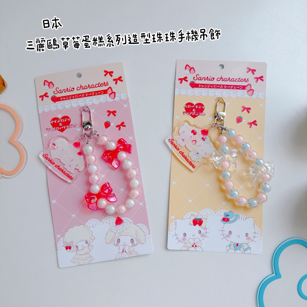 日本三麗鷗草莓蛋糕系列造型珠珠手機吊飾