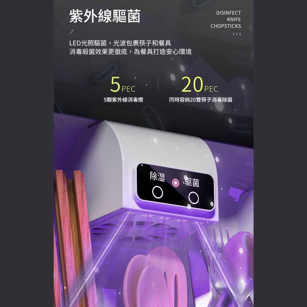 ✅內置五顆紫外線消毒燈,消除餐具上的細菌