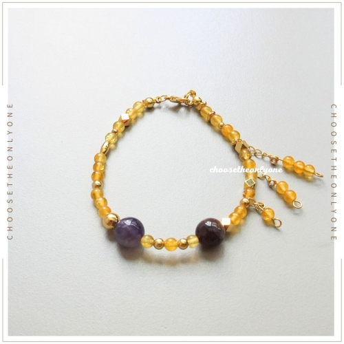 天然紫幽靈10mm*2(中間)、其餘天然黃水晶4mm、配飾材質電鍍金,電鍍銀