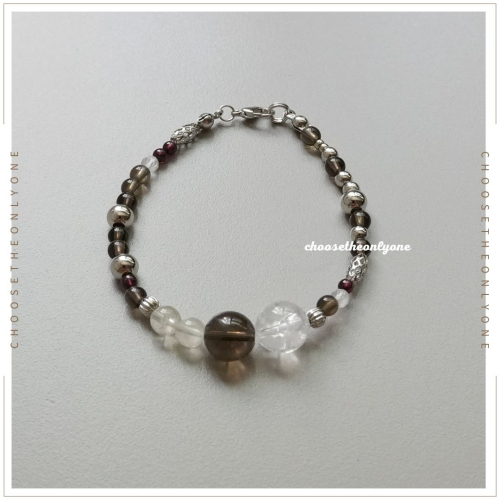 商品名稱:天然白水晶茶晶石榴石手鍊