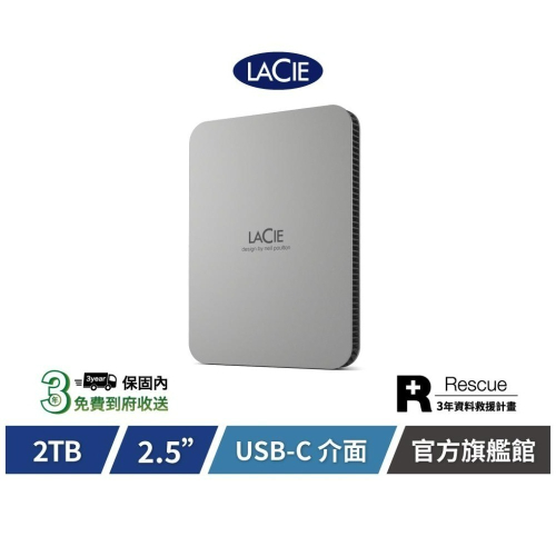 【LaCie 萊斯】 Mobile Drive v2 USB-C 2TB 行動硬碟 - 月光銀