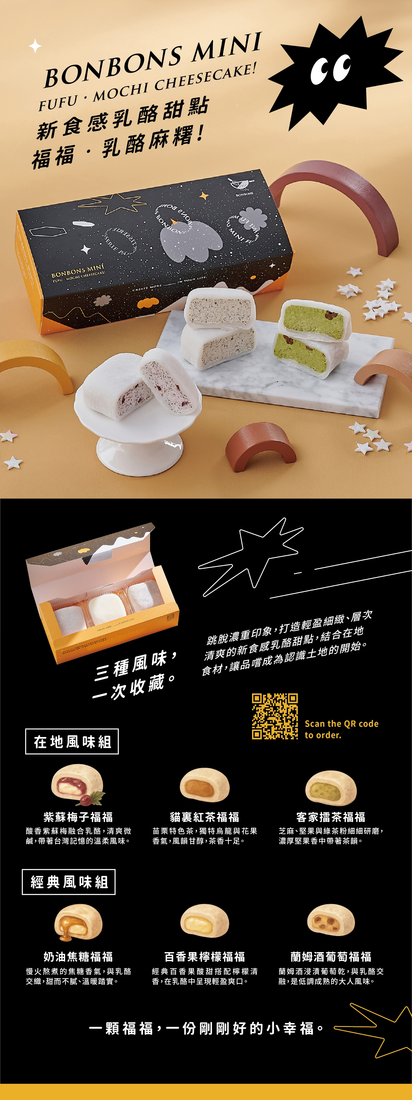 • 經典款福福(焦糖奶油、蘭姆酒葡萄、百香檸檬)