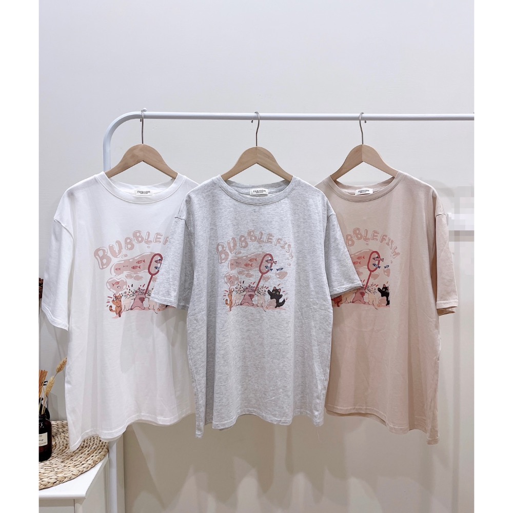涼感棉 可愛貓咪捕魚🐟上衣