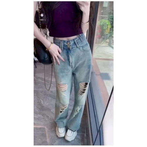 ✨不走甜美路線,這款高腰破壞牛仔褲就是給有個性的你。率性刷破搭配寬鬆直筒剪裁,帥氣又不失女人味,怎麼搭都自帶氣場。