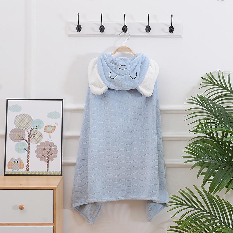 現貨 A類兒童超吸水不含螢光劑帶帽鬥篷超柔珊瑚絨洗澡浴巾