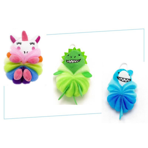 現貨 兒童卡通造型環保安全印染沐浴球發泡柔軟搓澡球