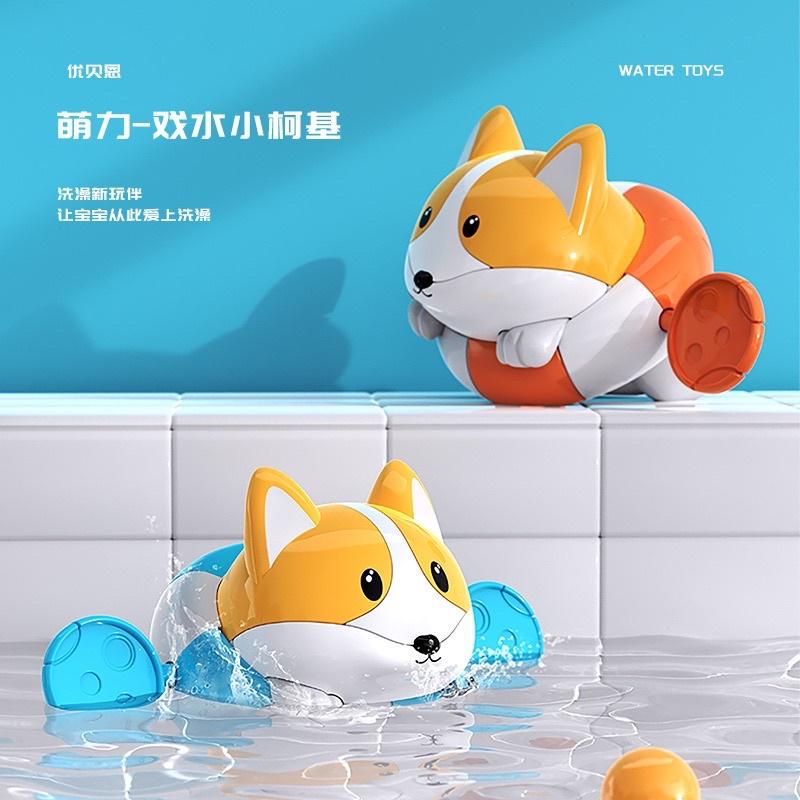 現貨 寶寶洗澡戲水玩具 萌趣發條上鏈小柯基遊水玩具