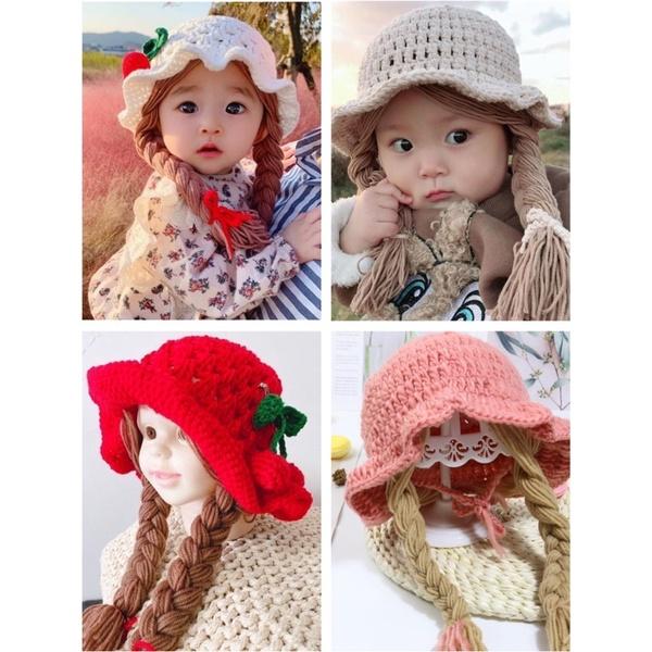 現貨 韓版嬰幼兒櫻桃針織帽 手鈎麻花新生兒拍照道具帽