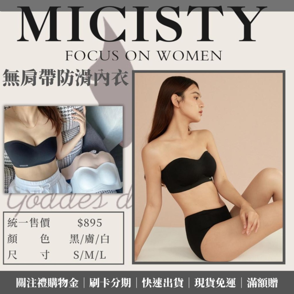 Micisty 密汐皙迪 平口內衣 防滑膠條 隱形內衣 附肩帶 無肩帶內衣 無痕內衣 防滑平口內衣 抹胸 無鋼圈內衣