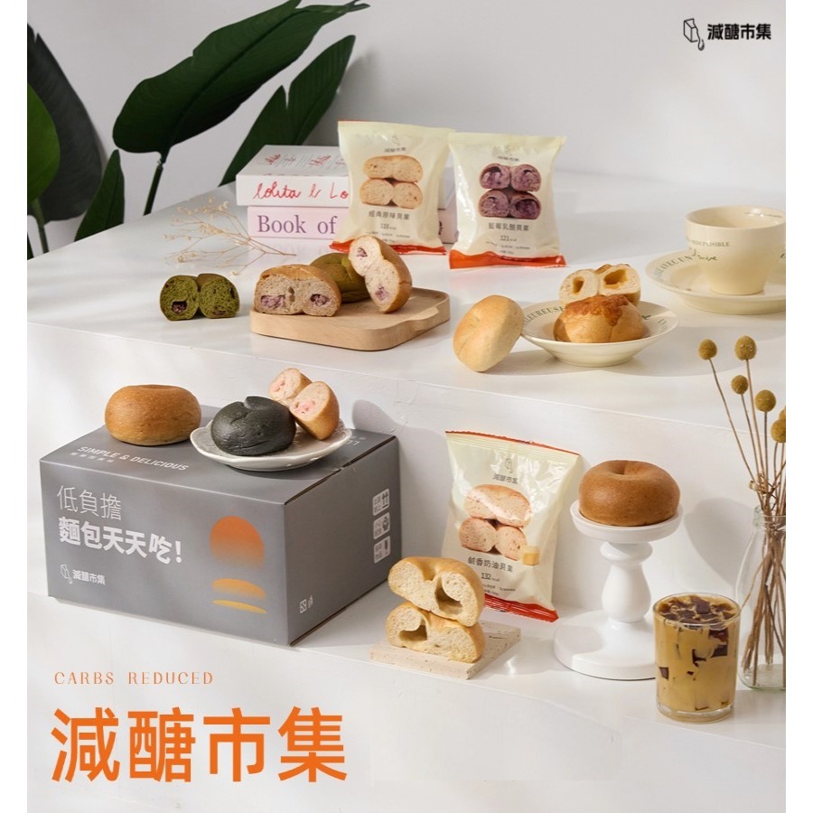 品牌品名:減醣市集 減醣貝果14天體驗組 內容物:經典原味*2入+抹茶紅豆*2入+芝麻乳酪*2入+起司乳酪丁*2入+草莓乳酪*2入+藍莓乳酪*2入+鹹香奶油*2入
