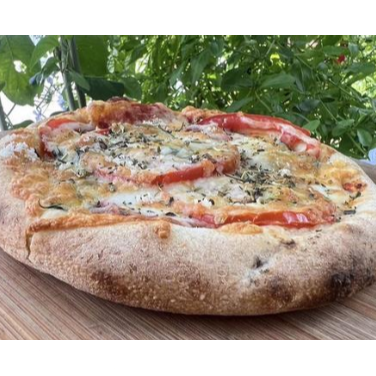 番茄紅醬、新鮮九層塔、新鮮番茄片、 mozzarella起司、chadder起司 。