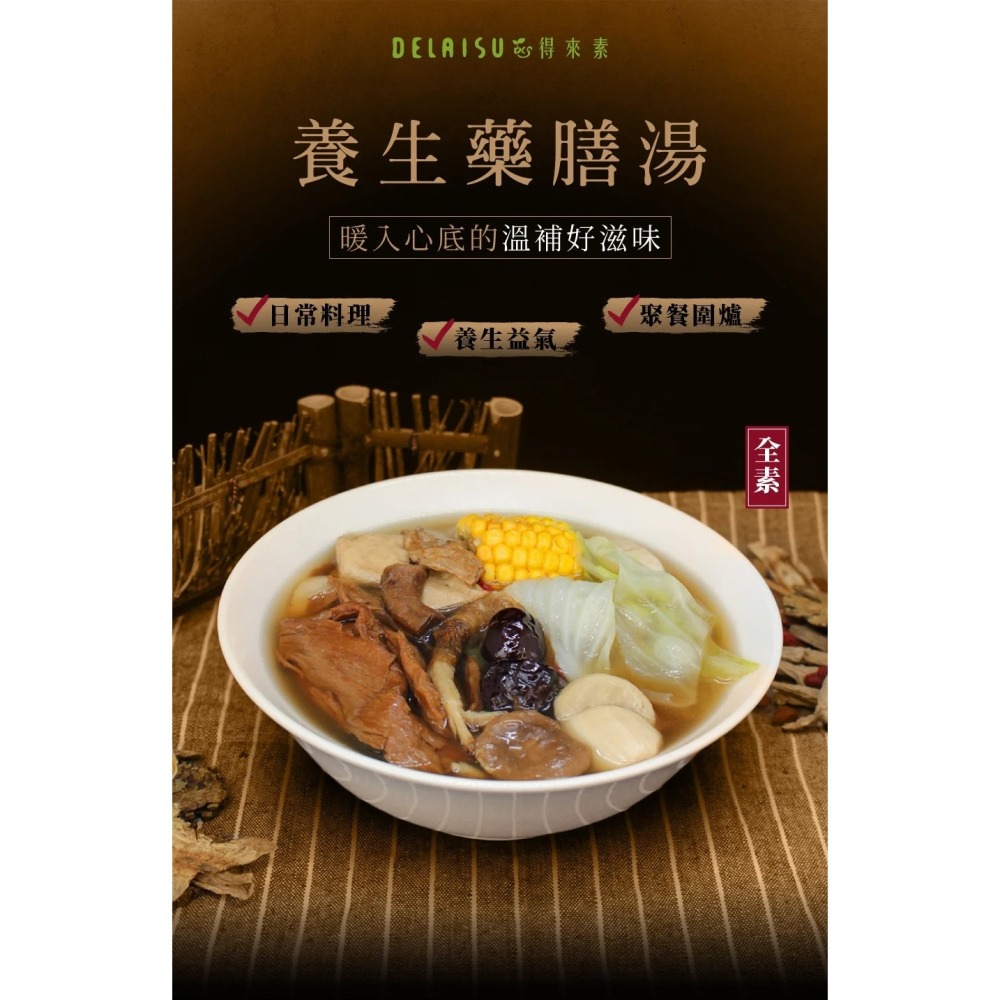 內容物有兩包,一包是料(300克),一包是湯(700克),整整1000克,超值補湯。 我們的藥膳湯也可以當湯底唷!(冬天有泡菜湯底,藥膳湯底,都可以在得來素滿足了)。 老顧客說:得來素藥膳湯,料多湯味美,料吃完湯還可以煮湯麵,超好吃的! 快幫家人暖心又暖胃一下吧! 趕快為家人準備一下,暖心暖胃吧! 成分:水,百頁,麵腸,皮絲,小麥蛋白,,紅棗,香菇類,鹽,麻油,薑,味醂,甘草,桂枝,熟地,黃耆,玉桂,鮮味多,枸杞,當歸,川芎,黨蔘,肉桂粉