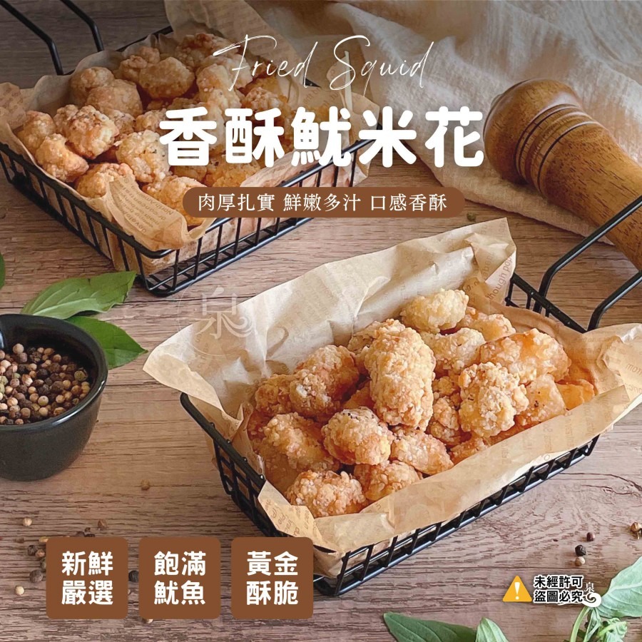 【酥脆油炸】:熱油約 170°C,將魷米花放入油炸至浮起且成金黃色,口感最為酥脆彈牙。