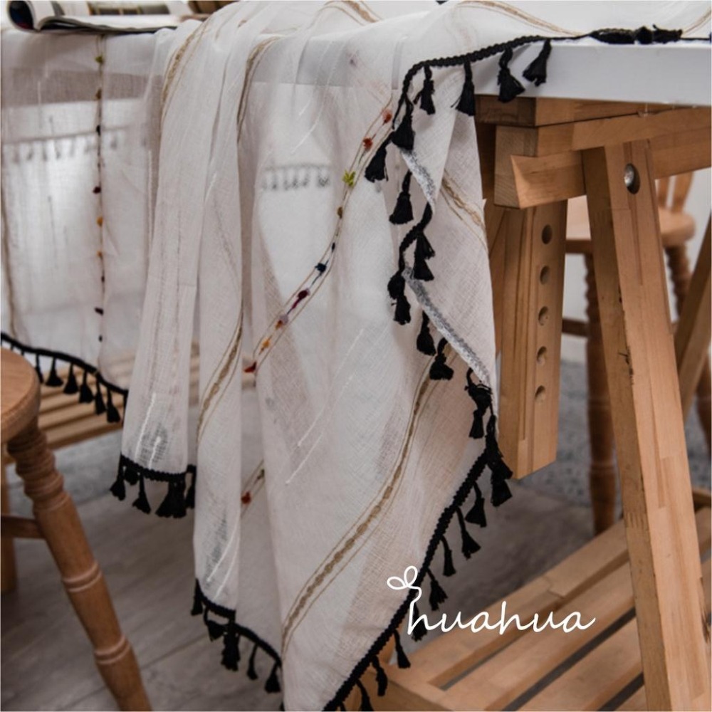 【HUAHUA】 #定制 #布藝 #餐桌布 #北歐風 #彩虹 #條紋 #提花 #桌布 #裝飾 #黑色流蘇 #家居 #簡約 #棉麻 #北歐風茶几布 #流蘇餐桌布蓋巾 #多用途蓋巾
