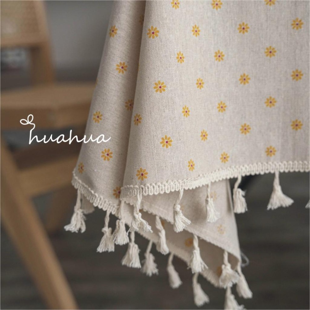 #北歐桌布 #簡約桌巾 #棉麻黃色小菊印花流蘇桌布 #長方形流蘇桌布 #田園清新桌巾 #家用茶几防塵蓋巾 #素色桌布