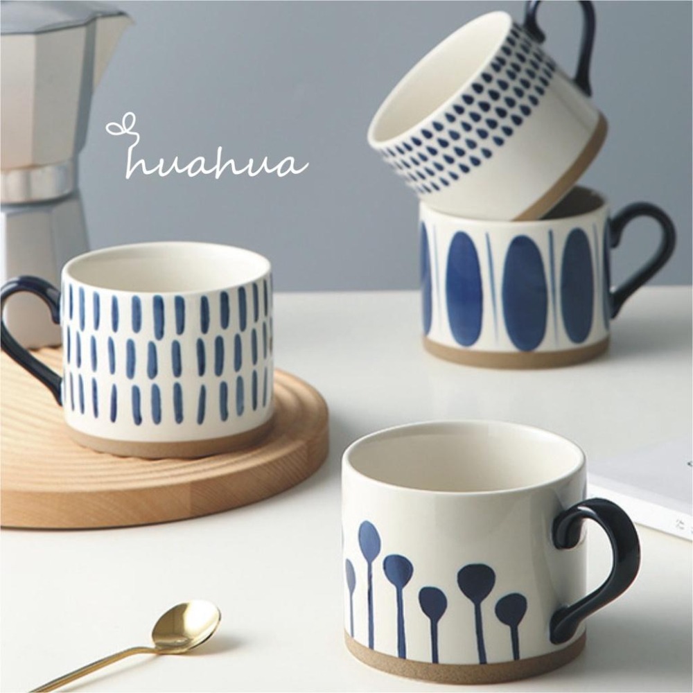 【HUAHUA】 #北歐風杯子 #大容量陶瓷馬克杯 #藍色手繪釉下彩咖啡杯 #簡約馬克杯 #茶杯 #紅色早餐杯 #簡約喝水杯