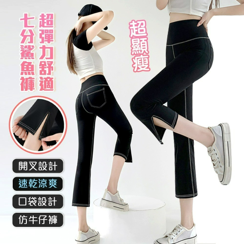 喔買尬超顯瘦的七分開叉褲