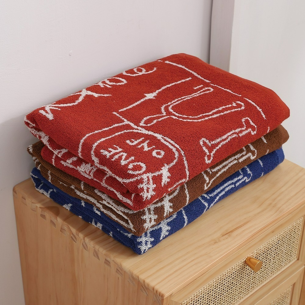 品名 : 純棉黑板塗鴉風格精梳棉浴巾-MS