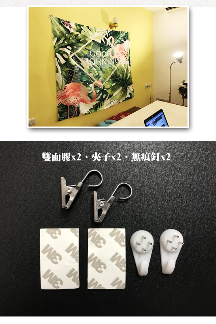 👉🏻每張掛布皆贈送3M掛勾*2+掛夾*2,配件包的3M掛勾承重力1kg只能承受掛布重量,如果需要掛燈,請務必另外購買掛鉤(2個掛勾承重力4kg)