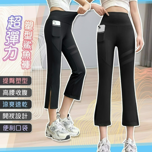 商品名稱:超顯瘦輕薄涼感八分彈力開叉鯊魚褲-W