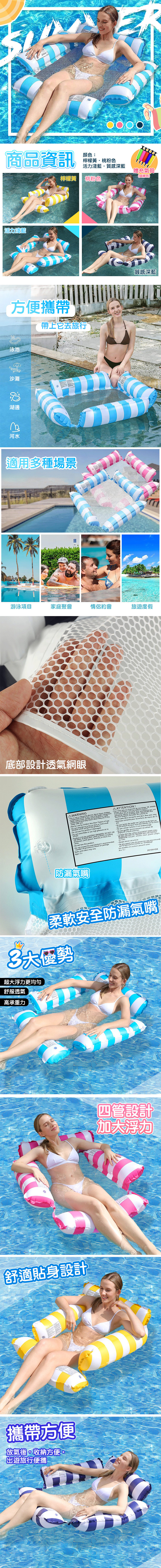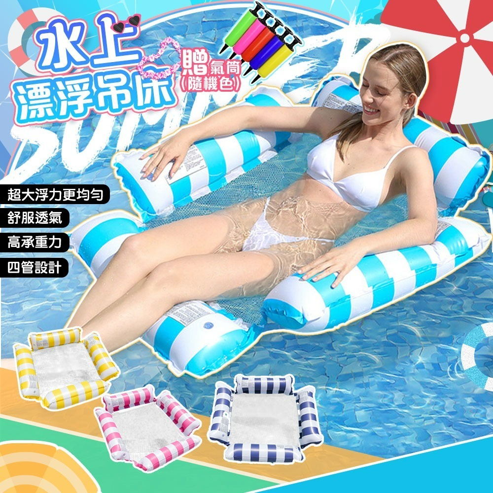 商品名稱:升級四管超大水上漂浮吊床贈充氣筒 泳圈-A