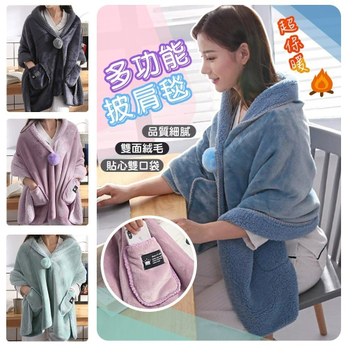 商品名稱:升級加長雙面絨口袋百搭披肩毯-D