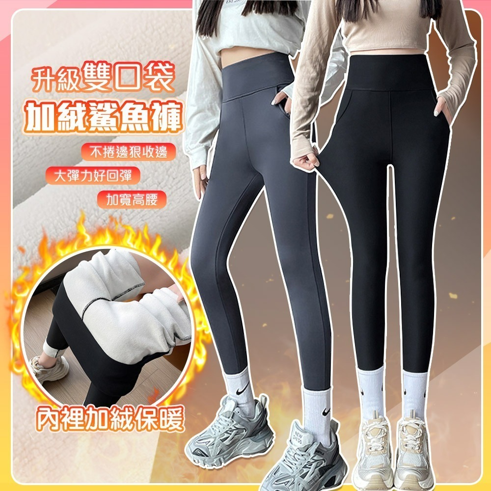 品名:升級加絨雙口袋顯瘦彈力保暖鯊魚褲-2PC