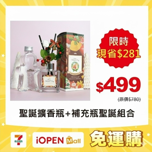 ❄️200ml聖誕花圈造型擴香瓶禮盒 + 🎄300ml薑餅人造型補充瓶 + 聖誕袋