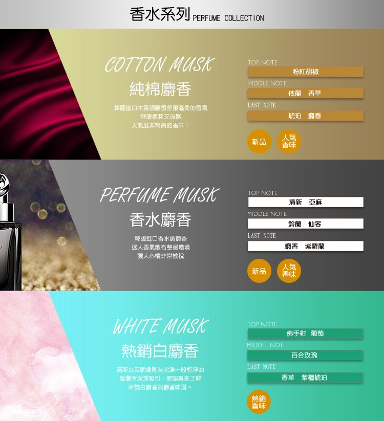 香水系列:香水麝香、純棉麝香、熱銷白麝香
