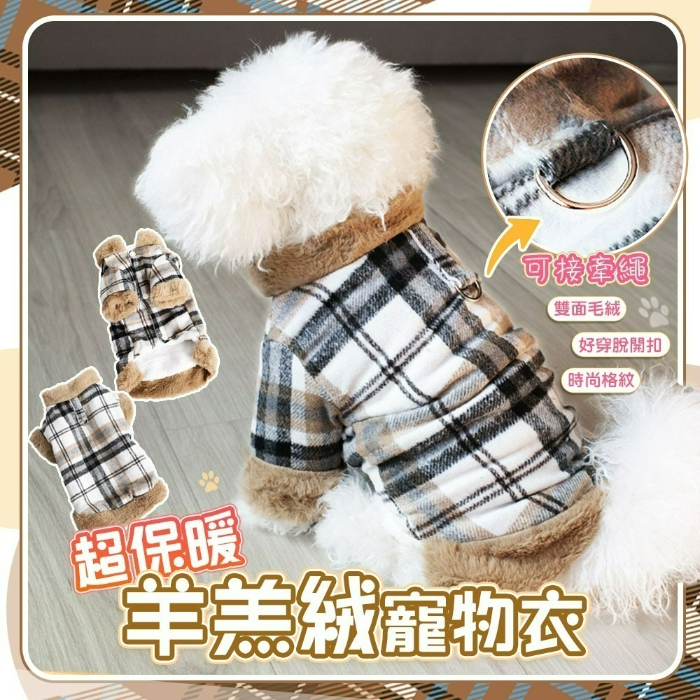 商品名稱:帥氣羊羔絨格紋保暖寵物衣-1TL