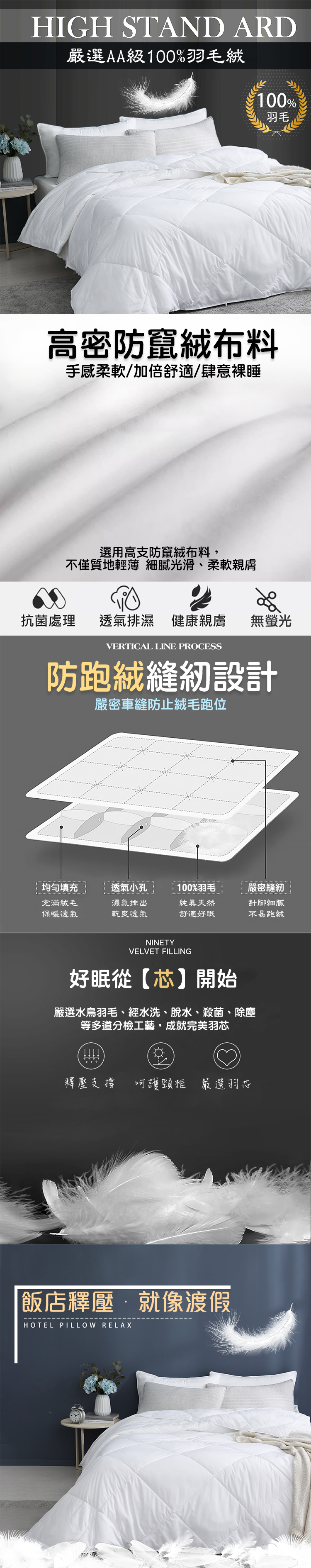 🏭採用100% POLYESTER防絨布,100%天然水鳥羽毛絨 =完美比例 飯店水鳥羽毛被