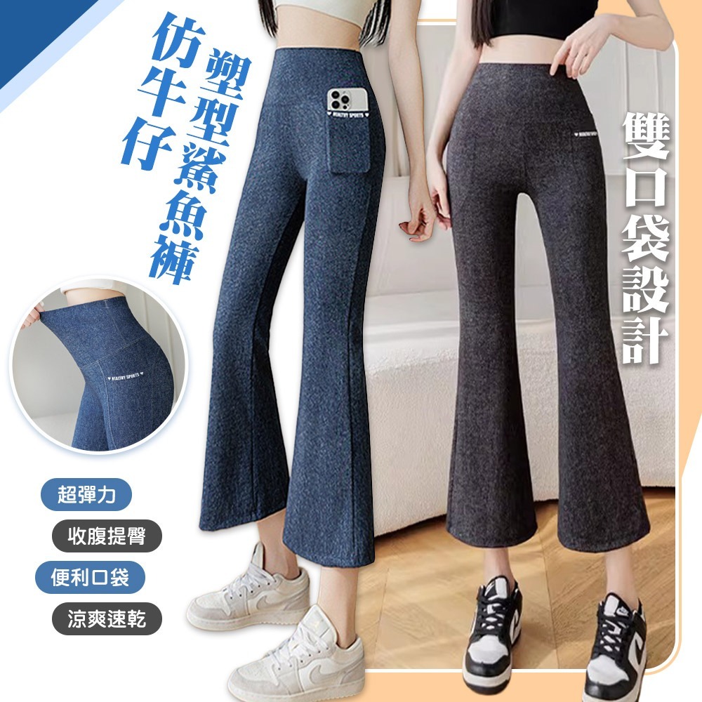 必備款仿牛仔九分彈力鯊魚褲!