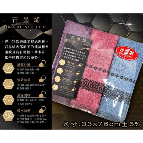 台灣製造 遠紅外線 石墨烯蜂巢緞紋毛巾三入組 ( 顏色隨機出貨 )