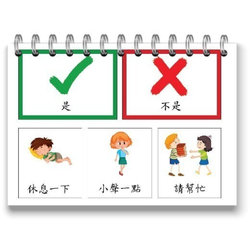 快速溝通板,包括“是”、“不是”、“好”、“不好”等