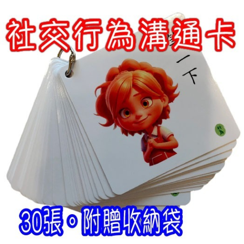社交行為溝通卡的內容主要以提升社交能力及舒緩情緒,提醒在公開場合時的行為或禮儀。卡片內容包括:排隊、坐好、穿好衣服、不要亂碰、不要吵架、好了、一起玩、要有禮貌、認真吃飯、不要生氣、休息一下、認真聽、站好、想一想、說話要禮貌、不要丟、不要叫、友愛同學、不要堆、做得很好、很棒!讚!、等一下。。。等30張卡。