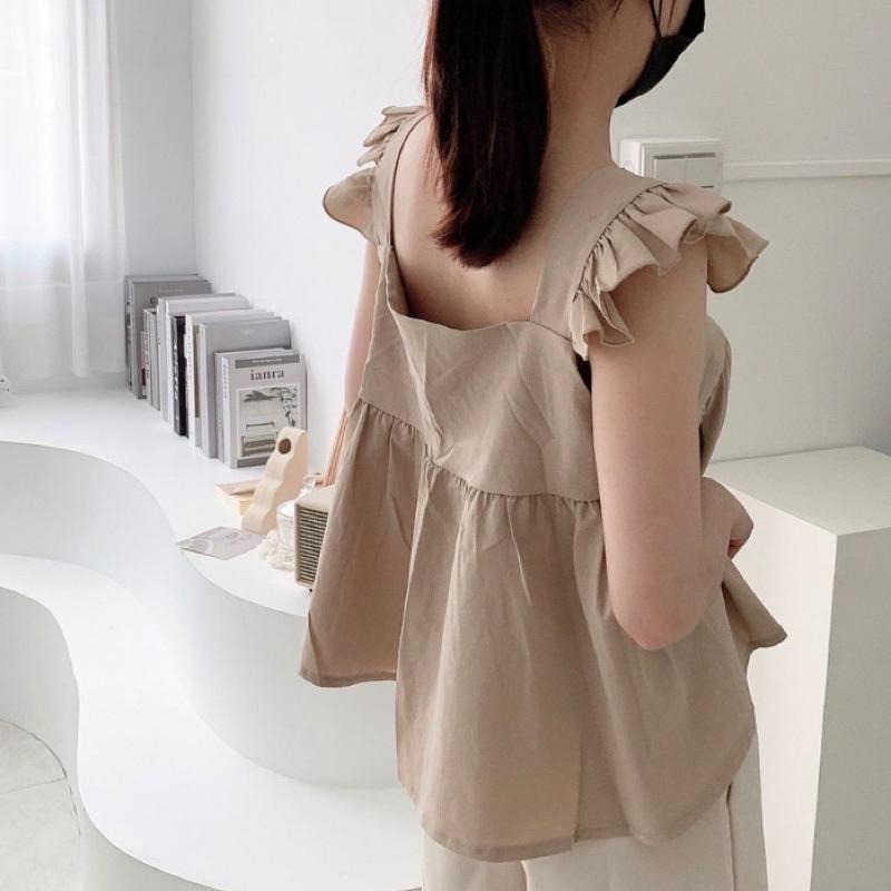 荷葉邊娃娃上衣,方型領小露鎖骨