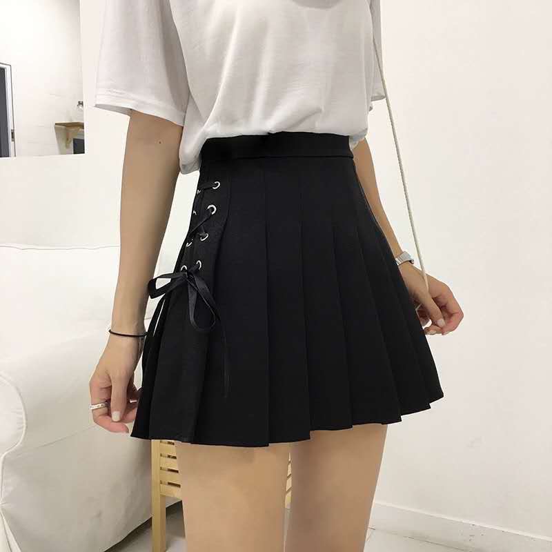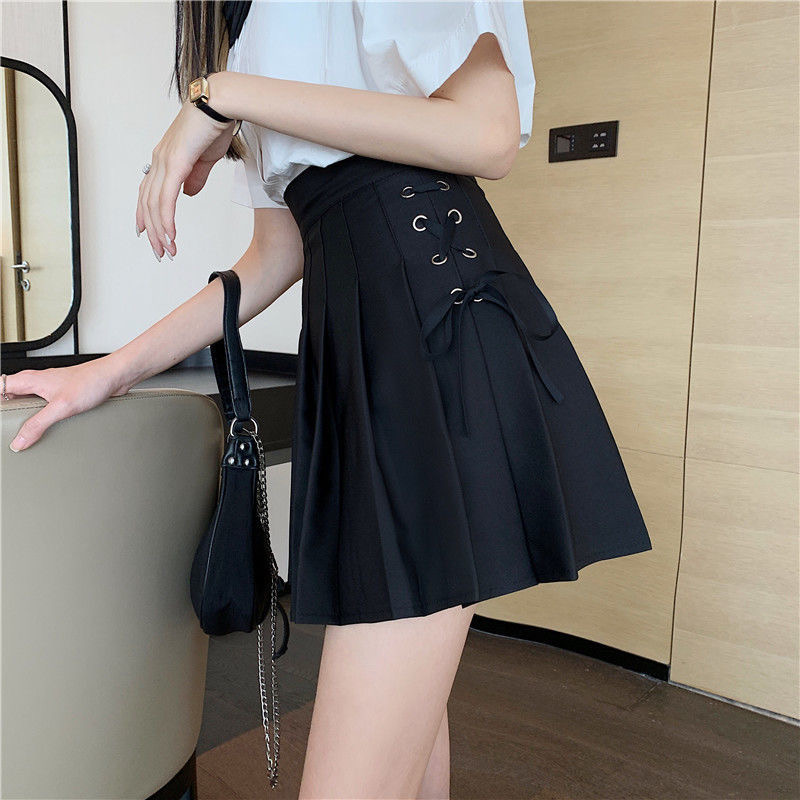 AS🤍 百褶裙 百搭 綁帶款 韓版 學院風半身裙 內襯 高腰