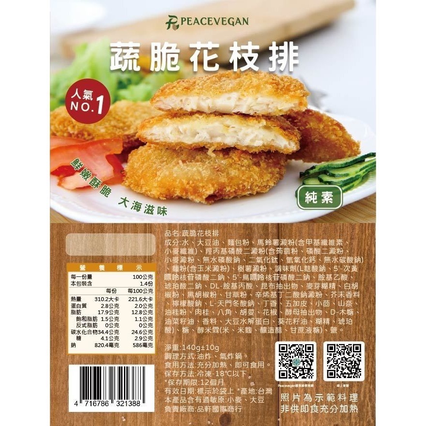 成分:水、大豆油、麵包粉、馬鈴薯澱粉(含甲基纖維素、